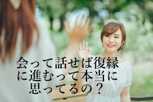 相手に受け入れられていない状態だと分かってない方は、「会って話そう!!会って話せば分かるから!!」と相手の気持ちを無視した言葉を相手に伝えます。相手の気持ちは「会って話したところで何も変わらない。会うだけ無駄だよ」と、あなたと会ったところで何も変わらない事を示唆しても、あなたは相手に受け入れてもらえてない事を受け入れてないので、相手の言葉に耳を傾けません。